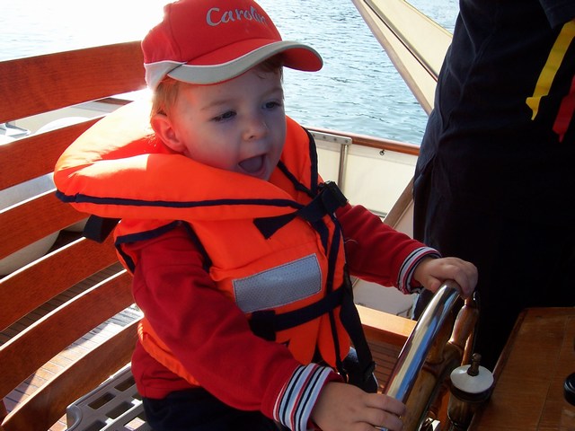 Ich habe leider noch kein Boot, dabei kann ich doch schon ganz prima mit Opa's Beiboot fahren.