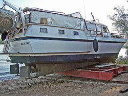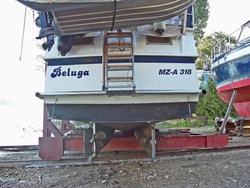 Beluga steht auf ihren Kielen auf dem Wagen |