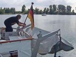 Habt ihr gesehen, dass ich immer eine Schwimmweste trage? Sie ist manchmal schön lästig, aber eigentlich ist sie ja auch schick. Auf den großen Schiffen haben die Matrosen auch Schwimmwesten an, wenn sie auf Deck herumlaufen. Echt cool! Mit dem Beiboot darf man nur so weit vom großen Boot wegfahren, dass man es noch sieht. Wenn man weiter weg fahren will, sagt mein Opa, dann braucht das Beiboot eine eigene Nummer, so ähnlich wie das Kennzeichen am Auto.