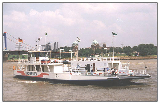 Ein Fluss ist eine natürlich Grenze in einem Land. Wenn man von einem Ufer an das andere will, braucht man eine Brücke und wenn es keine Brücke gibt, dann muss man mit einem Boot übersetzen. Weil man aber ein Auto nicht so einfach auf ein Schiff verladen kann, gibts es Autofähren. Da kann ein Auto drauffahren. Die Fähren haben Auffahrrampen, die werden ans Ufer gebracht und darüber können die Autos auf die Fähre fahren. Personen- und Autofähre "Linz-Remagen"