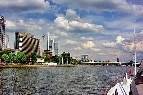 Unser Main ist der einzige Fluss, der in Deutschland entspringt und in Deutschland in einen anderen Fluss mündet. Nach einer Strecke von 524 km mündet er bei Mainz in den Rhein und ist dessen längster Nebenfluss. Und er ist ein richtiger Querkopf. Er ist der einzige schiffbare Fluss in Deutschland, der nicht nach Norden läuft, sondern von Osten nach Westen. Nur die Donau, die will auch anders, die läuft nach Osten. Der Main hat zwei kurze Quellflüsse, den Weißen und den Roten Main. Der Weiße Main verdankt seinen Namen dem hellen Granitgestein um seine Quelle, welches das Wasser weißlich erscheinen lässt. Die Quelle es roten Mains sprudelt aus lehmigem Grund, der gibt ihm eine rötliche Farbe und damit auch den Namen Der Main entsteht durch den Zusammenfluss von Weißem Main und Rotem Main bei Kulmbach in Bayern. Er mäandert an Odenwald und Spessart vorbei. Seine Ufer sind hauptsächlich von Wein und Wald bewachsen. Der schiffbare, kanalisierte Main ist 384 km lang und hat 34 Schleusen.