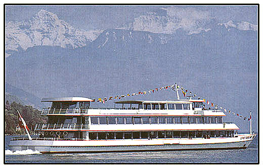 Es gibt ganz kleine Passagierboote, da passen nur ganz wenig Leute rein. Die fahren auf Seen oder kleinen Flüssen spazieren. Rundfahrtboote sind meistens schon ein bisschen größer. Und richtig groß sind die Passagierboote, die auf großen Seen, zum Beispiel dem Bodensee, dem Rhein oder anderen großen Flüssen fahren. 1000 Personen-Fahrgastschiff „Berner Oberland” Dann gibt es noch Hotelschiffe. In denen können die Leute wohnen und schlafen. Sie bekommen zu essen und zu trinken, wie in einem Hotel und werden dabei von Ort zu Ort gefahren. Die großen Passagierboote auf dem Meer heißen Kreuzfahrer und sehen so aus: |