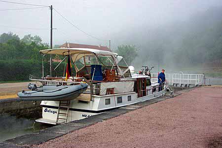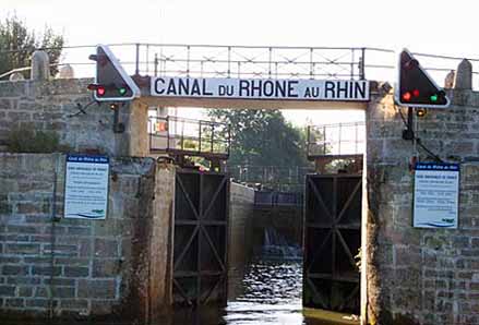 Das ist die Schleusentreppe ins Elsass. Es sind immer eine Schleuse, ein kleines Staubecken, das nennt man Stauhaltung, und wieder eine Schleuse. So oft, bis man vom Berg ins Tal geschleust hat, oder umgekehrt. Wenn aber der Höhenunterschied noch größer ist, dann hat man keine Schleusen mehr gebaut, sondern ein Schiffshebewerk. Was das ist und wie das aussieht, das findert Ihr |