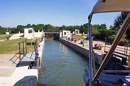 Die Schleusen in den Flüssen und den Großschifffahrts-Kanälen werden von Schleusenwärtern elektrisch bedient. In vielen kleinen Schleusen auf Kanälen in Frankreich, da muss die Bootsbesatzung die Schleuse noch selber bedienen. Manchmal geht das elektrisch mit einem Gerät wie eine Fernbedienung am Fernseher aber manchmal muss man die Schleusen und Schütze auch noch von Hand aufdrehen. Das ist dann ganz schön viel Arbeit.