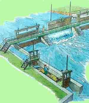 Ihr wisst doch alle, was ein Wasserfall ist?! Und ihr wisst auch, dass es nicht möglich ist mit einem Boot einen Wasserfall runter zu fahren. Höchstens einen ganz kleinen mit einem Wildwasserkanu. Wenn also in einem Wasserweg ein solcher Wasserfall ist und der Wasserweg soll schiffbar gemacht werden, dann muss man eine Schleuse bauen.