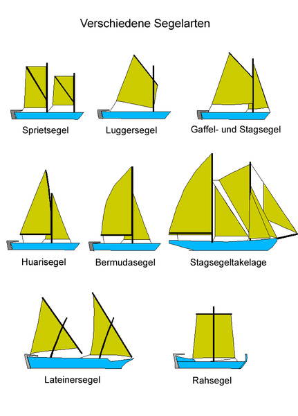 Die meisten Segelboote haben ein Großsegel und ein Vorsegel.