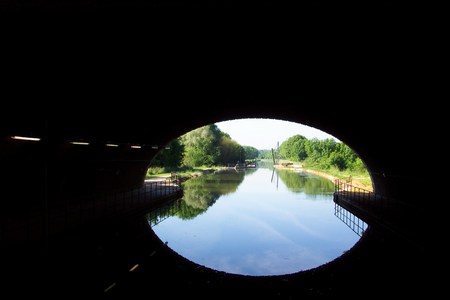 Tunnel Früher, als noch alle Lasten auf Pferde- oder Ochsenkarren transportiert wurden, war ein Kanal eine richtig tolle Sache. Auf ihm konnten große Schiffe fahren und auf jeder Reise viel mehr Waren transportieren als ein Karren an Land. Manchmal standen die Kanalbauer vor großen Hindernissen wie zum Beispiel einem Berg. Wenn der Berg nicht zu hoch war, konnten man ihn mit einer Schleusentreppe überwinden. Wo das nicht möglich war, wurde ein Tunnel durch den Berg gebuddelt und der Kanal floss dann durch den Tunnel. Das ist natürlich heute eine aufregende Sache, wenn man mit einem Sportboot durch einen Tunnel fährt. Manche Tunnel sind innen beleuchtet, aber andere sind auch ganz dunkel. Das ist dann richtig gruselig. Hier geht es in einen beleuchteten Tunnel. Hinter uns fährt noch ein Sportboot in den Tunnel ein.