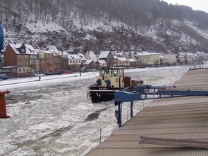 Das ist ein Floß Ein Schlepper im Eis im Main bei Miltenberg (Foto MS Jenny)