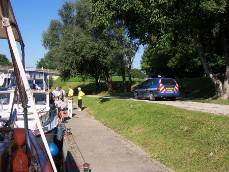 Man hört immer mal wieder, dass irgendwo ein Boot abgebunden wurde, aber man glaubt es kaum. Es gibt Dinge, die passieren nur anderen und ob sie das Boot richtig vertäut hatten, das wäre ja auch noch zu prüfen. Bis zu dem Tag, der Nacht, in der das eigene Boot herrenlos im Fluss oder Kanal treibt. Es ist uns in fast 50 Jahren Wassersport nie passiert. Es ist uns heuer in Frankreich passiert! Und das gleich zwei Mal im Doubs. Nachts um 2 trieben alle Boote kreuz und quer im Kanal. Da es nur wenig Strömung und gar keinen Wind hatte, ist auch kein größerer Schaden an den Booten entstanden. Die Taue waren nur über die Poller gehoben und die Stecker wurden gezogen. Im Kanal kann eigentlich auch nicht viel passieren. Doch was wäre geschehen, wäre uns das im Fluss passiert? Und das gerade in diesem Jahr, wo der Doubs kräftig Strömung und einen sehr hohen Wasserstand hatte! Treibt das Boot über ein Wehr besteht Gefahr, nicht nur für das Boot, auch für Leib und Leben der Besatzung. Von Unfug in Ranchot, in Baume-les-Dames im neuen Hafen und im Hafenbecken von Epinal haben wir erfahren. Auch im letzten Jahr soll die Polizei mehrere Einsätze gefahren haben. Selbst nächtliche Polizeistreifen schützen nicht gänzlich, wenn Jugendliche beschlossen haben ihren keimenden Testosteron-Spiegel an Bootsfahrern zu polieren. Abhilfe schafft nur Vorsorge. Eine kurze Edelstahlkette fest um einen Poller an Land und auf dem Boot belegt, mit einem Vorhängeschloss gesichert, das erschwert Übergriffe. Im Fluss unbedingt zusätzlich den Anker fallen lassen. Wenn der Anker rutscht wird man ganz sicher wach. Klein, aber fein, ist eine Taschen-Alarmanlage. Mit einer Angelschnur zwischen Boot und Land fast unsichtbar befestigt, macht sie einen Höllenlärm, wenn sich das Boot vom Anleger entfernt.
