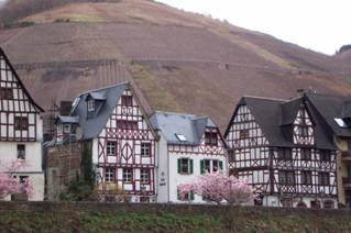 Trunken müssen wir alle sein, Jugend ist Trunkenheit ohne Wein, Trinkt sich das Alter wieder zur Jugend, So ist es wundervolle Jugend. Für Sorgen sorgt das liebe Leben, Und Sorgenbrecher sind die Reben. Der Rhein, die Vielvölkerstraße, aus wildzerklüfteten Felsen bricht er zutage, stürzt donnernd in die Tiefe, zwängt sich durch die engen Felsen des Rheinischen Schiefergebirges. Pulsierende Städte, grün wallende Fluten, kuschelige Weinorte und stolze Burgen, Rex Rhenus, der König der Flüsse. Wie bescheiden dagegen die Mosel. Haben nicht auch hier Strom und Sturm des Völkergewoges Land und Leute geprägt? Ist sie nicht sogar burgenreicher als der Rhein? Wechseln nicht romantische Städtchen und mittelalterliche Dörfchen bergauf und bergab an den grünen Hängen entlang? Sie ist enger, vertrauter, heimeliger als der Rhein. Man könnte sich auch hier zu Hause fühlen. Der Flussspiegel reflektiert das Sonnenlicht und fungiert als Wärmespeicher. Doch ebenso nötig braucht der Wein viele Arten von Feuchtigkeit, Regen, Tau und Nebel, der im Winter den Frost abhält. Der Schieferboden liefert den Trauben Mineralstoffe und prägt ihr feines Aroma. Er speichert die Sonnenwärme tagsüber und gibt sie nachts an die Reben ab. Die Fußbodenheizung der Natur. Spitzengewächse wie der Moselwein entwickeln sich unter dem Schutz eines sanften Himmels. Wissenschaftlich ausgedrückt heißt das, das Moseltal hat ein ausgeglichenes gemäßigtes Klima. Die Himmelsrichtung, die Hangneigung, die Intensität der Sonnenreflexion durch den Flussspiegel, eine schützende Bergkuppe, all das macht einen guten Wein. In unserer Überheblichkeit bilden wir uns ein der Erfinder von allem zu sein. Doch wer hätte gedacht, dass bereits die ersten Menschen auf unserem Planeten die Rebe vorgefunden haben? Allerdings handelte es sich um eine Wildrebe, die, durch Funde bewiesen, seit rund 130 Millionen Jahre existiert. Wie die Rebe zu uns kam? Mir gefällt diese Geschichte besonders gut: Als die Menschen aus dem Paradies vertrieben waren, lag der Garten Eden einsam unter dem Glanz der Sonne; denn auch die Tiere hatten ihn verlassen und sich weitum über die Erde zerstreut. Allein Gott der Herr lustwandelte an den Sonntagen unter den Bäumen und die Blumen blühten immer noch herrlich vor ihm auf. Endlich aber wurde Gott der Einsamkeit müde und immer mehr sehnt er sich nach den Geschöpfen seiner Hände und seines Herzens. Er beschloss zu guter Letzt, sich mit den Vertriebenen wieder auszusöhnen. Als er nun seine Augen hob, sah er, wie sie sich um das tägliche Brot plagten. Sein Herz wurde von Mitleid gerührt. Er wollte nicht mit leeren Händen zu ihnen kommen und so zog er die Gewächse des verlassenen Paradieses mit den Wurzeln aus dem Erdreich und nahm sie mit auf seine Reise zu den Menschen. Er kam von Süden her und zog immer weiter nach Norden und immer wieder versammelte er die Bewohner eines Landstriches um sich und verschenkte an sie, was sie sich erbaten. So hatte er schon die Palme und den Ölbaum und viele gute Sträucher und schöne Blumen abgegeben und kam nun aus dem Land der Mohren in das ebene Land am Rheinstrom. Es gefiel ihm aufs beste und er hielt an, um nach gewohnter Weise die Leute aus dieser weitläufigen Gegend zusammenzurufen. Von allen Seiten kamen die Scharen der Bewohner, vor allem aus der großen Ebene; aber auch von den Bergen stiegen sie herab und trafen Gott inmitten seiner grünen Vorräte. Sogleich umdrängten ihn die stolzen Bauern aus der weiten Ebene. „Herr“, riefen sie; „wir haben lange und breite Äcker und unsere Erde ist schwarz und locker, aus feiner Krume gemacht. Schenke uns den goldenen Weizen und das nahrhafte Korn, den grünen Klee und die weißen und gelben Rüben. Wir haben Platz für alle fruchtbaren Bäume, dass sie uns süße Ernten tragen: Gib uns den Apfel und die Birne, die Walnuss und die Kirsche, den Pfirsich und die Pflaume. Gib uns den Kohl für unsere Gärten und die roten Beeren, um unsere Beete einzufassen. Gib uns dies alles und wir wollen deiner gedenken, o Herr!“ Gott lächelte und schenkte ihnen, was sie sich gewünscht hatten. Danach umringten ihn die Männer aus den Bergen. „Herr“, sagten sie, „du hast unsere Vettern reich beschenkt. Wir haben freilich keine großen Äcker; aber wir haben die kühn geschwungenen Gipfel und die saftigen Täler. Wir haben keine weiche Krume; aber wir haben das beste Gestein und darüber rauschen schäumend unsere Bäche. Gib uns die Tanne und die Kiefer, dass sie die Berge grün bedecken und für die Täler gib uns saftiges Gras und würzige Kräuter, damit unsere Herden Futter haben und wir wollen dir dankbar sein“. Gott lächelte und gab auch ihnen was sie sich gewünscht hatten. Als nun die Männer aus dem Gebirge weggezogen waren, sah sich Gott zufrieden um. Nur eine grüne Schlingpflanze war übriggeblieben und lag als vergessenes Häuflein aus Blättern und Ranken zu seinen Füßen. Als er sich bückte um sie aufzuheben, erblickte er einige Leute in der Ferne und erschrak insgeheim, denn er wusste nicht, was er ihnen noch geben sollte. Trotzdem rief er zu den Fremden hinüber: „Kommt her! Hier bin ich, euer Vater!“ Sie kamen langsam näher, aber sie hielten ihre Augen gesenkt und schwiegen, so dass Gott sie noch einmal anreden musste: „Warum seid ihr nicht früher gekommen? Nun habe ich alles verschenkt und nichts mehr ist übrig als die Rebe!“ Und er wies auf die Schlingpflanze zu seinen Füßen. „Ach, Herr“, antworteten sie, „wir hatten nichts, was wir rühmen konnten. Unsere Heimat ist weder die Ebene noch das Gebirge, wir wohnen auf den Hügeln und Hängen zwischen den beiden. Aus Sand und Stein ist unser Boden, wie ihn das Wetter von den Bergen schwemmt. Gib uns was du noch hast und wir wollen es dir danken in Ewigkeit“. Gott hob die Rebe vom Boden auf. „Nehmt sie“, sprach er, sie ist für euch allein. Nirgends sonst wird sie gedeihen, als auf dem Boden eurer Hügel