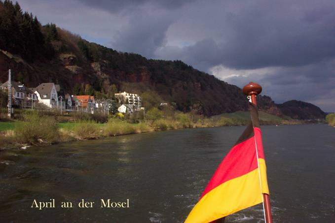 „Oberhalb Oberfell an der Mosel, wenn der Wandrer eine schroffe Felsenwand, welche sich ehedem bis in den Fluss erstreckte, überschritten hat, schaut ihm in beträchtlicher Höhe die alte Burg Thuron mit dem Flecken Alken entgegen“. So beginnt die sehr lange Geschichte des gewippten Ritters namens Brenner, der dem fürchterlich Zorno die Stirn bot und von diesem auf einem Katapult „mit furchtbarer Kraft über den Abgrund hinüber nach dem Standquartier des Erzbischofs“ geschleudert wurde. Doch der gute Brenner hatte Glück, landete im Gebüsch des Abhangs und klammerte sich an den vielen Weidenbüschen fest. Zorno wurde besiegt und seiner Gerechtigkeit zugeführt. Es gibt aber über diese Burg noch eine Geschichte, die mir auch sehr gut gefallen hat: Moselabwärts vom anmutigen Brodenbach liegt rechter Hand das verträumte Alken mit dem zierlichen Stadtschloss der Wiltberge und der Märchenkirche auf dem Gipfel der hohen Treppe. Darüber aber wälzt sich klobig und wüst Burg Thurant über die Höhe. Früher schrieb man sie auch Turon, und sie soll von ihrem Erbauer zur Erinnerung an seine Kreuzfahrt und das phönizische Tyrus ihren Namen erhalten haben. Doch so heidnisch oder christlich seine Gedanken auch gewesen sein mögen, bald kam es wegen der Burg zwischen denen von der Pfalz und dem Trierer Erzbischof zu hellem Streit, dass der von Trier die Kölner zu Hilfe holen musste. Denn Graf Zorno von der Pfalz saß nun einmal warm und sicher in der Burg, und raus sollte er wieder, mochte es kosten, was es wolle! Aber die Mauern waren dick, wie man heute noch an den beiden Bergfrieden sieht, und die Kölschen fanden sie zu dick, um ihnen mit Spießen und Stangen beizukommen. Die Pfälzer höhnten. Doch die von Köln ließen sich dadurch nicht anfechten. Sie hatten besseres zu tun. Sie rollten was sie nur an guten Fudern Moselwein auftreiben konnten herbei und umgaben die Burg mit einem feuchten Belagerungskranz. Und dann fingen sie an! Und da der Sommer heiß und lang war, die Köllschen aber, wie jedermann weiß, ebenso durstig wie gewaltige Sänger sind, sangen und tranken sie Tag und Nacht denen in der Burg was vor. Da höhnten die Pfälzer nicht mehr. Sie hatten wohl noch Mundvorrat und Wasser genug, doch das war es eben: sie hatten Wasser! Die Köllschen aber hatten Wein!! Mittlerweile war freilich die nähere Umgebung von den kurkölnischen Knechten völlig trocken gelegt worden, doch an der Mosel wächst viel Wein, und jedes Jahr gibt es einen neuen Herbst. Vieles vermag der Mensch; aber mit allem irdischen Wesen hat auch die Kraft seines Widerstands das eine gemein, dass sie einmal zu Ende geht. Wie Graf Zorno daher auch wetterte und fluchte: als der Herbst die Weinberge bunt färbte, konnten die Pfälzer das Gesinge nicht mehr hören und das Bechern nicht mehr mit ansehen. Sie übergaben also die Burg auf die Bedingung, sich an den kölnischen Fässern ordentlich satt trinken zu dürfen. Und das taten sie denn auch. Man spricht von drei Wochen, und dass leider beim Gelage noch ein Opfer gefallen wäre, ein Trossbub nämlich, der sich beim Heranschleifen der Weinkannen derart übernommen hätte, dass er drei Tage später starb. Doch das ist Schicksal, und Krieg ist Krieg. Die Pfälzer aber fanden, er wäre für eine gute Sache gestorben und begruben ihn ehrenvoll an der Stelle, wo heute das niedere Kreuz steht. Na denn Prost! Übrigens sollen einem alten Stiftsdokument nach in dieser Zeit dreitausend Fuder Wein vertilgt worden sein, wobei man schätzt, dass die Zahl der Belagerer höchsten 1500 Mann betrug. Da wird dann wohl manche Leber gestreikt haben. Ein Fuder sind 1000 l. Amtlich ist, dass nach Ende der Belagerung die Burg geteilt wurde. Der Kölner und der Trierer errichteten je einen Bergfried und zogen eine Scheidemauer zwischen sich. Der Friedensvertrag von Thurant ist die älteste erhaltene Urkunde in deutscher Sprache. Die Mosel ist noch reicher an Burgen als der Rhein. Durch Krieg, Zerstörung, Brand und Vernachlässigung sind leider die meisten der Burgen zu Ruinen geworden. Die Romantik der heutigen Burgen ist freilich weit von dem entfernt, wozu die Anlagen in früherer Zeit geschaffen wurden. Die Burg diente der Wehr und diesem Zweck musste sich alles andere unterordnen. Die Burgen waren meist mit einer Ringmauer umgeben, Zinnen oder Schießscharten schützten die Verteidiger. Sie wurden an strategisch wichtigen Stellen errichtet, oftmals auf einer Bergspitze, oder mit dem Berg im Rücken, eine Seite geschützt durch eine steilabfallende Felswand. Eine Zugbrücke sicherte den Eingang zum Tor im Torturm. Der Bergfried , das höchste und stärkste Bauwerk, war die letzte Zuflucht. Der meist hochgelegene Eingang war durch eine Leiter oder Holzbrücke zu betreten, die leicht zu entfernen waren. Das untere Geschoss konnte nur durch ein Loch in der Decke erreicht werden. Der Bergfried war zugleich Schwerpunkt, Wachturm und Statussymbol. Der Palas, der Hauptwohnbau war meist auch kein sehr angenehmer Aufenthalt. Die Fenster wurden oft nur mit Holzläden verschlossen. Doch Abtritte gab es schon. Kleine offene Häuschen an der Außenwand der Burg angebracht, das Geschäft plumpste umgebremst in den Garten. Doch womit haben sich die alten Rittersleut nur den Hintern abgeputzt? Wasser gab es aus Zisternen und aufwendig angelegten Brunnen, manche mehrere hundert Meter tief. Kräuter und Blumen kamen aus kleinen Gärten, in der Vorburg standen Neben- und Wirtschaftgebäude, hier hielt man auch Haustiere. Die Räume in den Burgen waren meist klein und zugig. Ohne dicke Bekleidung durch Felle ging gar nichts. Riesige Kamine qualmten mit Kienspan, Öllampe oder Fackel für die Beleuchtung um die Wette. Man darf eine alte Wehrburg keinesfalls mit den oft schlossähnlichen Anlagen oder Schlössern der Fürsten verwechseln. Wir haben's da schon besser, in unserer Beluga qualmt höchstens mal die Petroleumlampe, wenn mein Kapitän vergisst den Doch runter zu drehen. Wir schipp