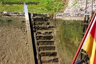 Der schiffbare Teil der Yonne ist 108 km lang und hat 26 äußerst merkwürdige Schleusen. Obwohl die Yonne erst spät, 1840, kanalisiert wurde und die Kanalbauer doch wirklich Erfahrung im Bau von Schleusen mit geraden Kammerwänden hatten, haben viele Schleusen auf der Yonne schräg abfallende Wände aus Steinblöcken. Die Poller auf den Schleusenwänden sind fast nicht zu erreichen, auch muss man sich von den Wänden fernhalten um nicht seitlich aufzusetzen und sich eventuell Schraube und Welle zu verbiegen. Auf den schrägen Wänden setzt sich der aufgewühlte Schlamm ab, sie sind dick mit Sedimenten überzogen, rausklettern über die Treppen völlig unmöglich, es sei denn man liebt Schlammbäder.