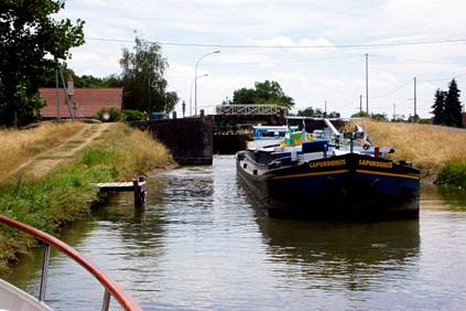 Letztes Jahr machte uns der Tiefgang, bzw. der fehlende Tiefgang der Loire beim Einfahren in die Schleuse, die uns von der Loire in den Kanal bringen soll, Probleme. Dieses Jahr meint es Neptun gut mit uns, ohne Schwierigkeiten, ohne Grundberührung, laufen wir in die Automatikschleuse ein, die auch noch einwandfrei funktioniert. So viel Glück ist fast nicht zu fassen und hält auch nicht lange an. An der nächsten Schleuse oberhalb der kurzen Stauhaltung zieht gerade ein Bumsboot an der Schnur, die die Schleuse in Bewegung setzt. Natürlich dauert es eine Weile, bis er geschleust hat und die Schleuse das Wasser ablässt um uns aufzunehmen. Alles klappt wie geschmiert und schon von weitem sehen wir, dass die nächste Schleuse für uns offen steht. Doch leider erkennen wir beim näherkommen, dass das Bumsboot drin steht und auf uns wartet. Das Bumsboot ist jetzt in französischem Privatbesitz, kein Charterboot mehr. Der Franzose ist alles andere als beglückt, dass er auf uns warten musste. Hemmungslos schmeißt er seine Taue auf die Schleuse und wartet, dass der Schleusenwärter sie ihm einhängt. Er weicht keinen Zentimeter nach vorne. Wir müssen das Heck schräg stellen, damit der Schleusenwärter überhaupt das Tor schließen kann. Der junge schokoladenbraune Mann bekommt seinen ganzen Frust ab und handelt sich Gemecker ein, auch weil er die Schütze etwas schnell öffnet und erhebliche Verwirbelungen in der Schleuse entstehen. Wortreich erklärt der Franzose Manfred dann, dass die Schleusen nicht geeignet sind um zwei Boote zu schleusen. Wir haben zwar in Frankreich nicht französisch gelernt, aber eins haben wir gelernt, wenn man was nicht verstehen will, große Augen machen, sich dumm stellen und Achselzucken. Das hilft meistens. Manfred hat Schulterzucken gepaart mit einem unschuldigen Augenaufschlag bis zur Vollendung entwickelt. „Nix francaise“. Und wir kleben weiter an seinem Auspuff, denn eine 38 m Schleuse ist für ein 15 m und ein 10 m Boot weiß Gott nicht zu klein. Während der Mittagspause laufen wir einem anderen Franzosen auf. Ein 20 m langer schmaler Pott, mit gestreiften, gebogten Markisen, das Heck geschmückt mit künstlichen Blumen, als Relingstützen stilisierte Anker und Steuerräder, auf dem Vorschiff ein Blumenkasten neben dem anderen bepflanzt mit Geranien. Mit ihm ist es in der Schleuse wirklich eng. Die Bewegungen der Beiden und der Umgang mit dem Boot lässt schnell darauf schließen, dass es sich hier um Berufsschiffer, wahrscheinlich ehemalige Penischenfahrer handelt. Als uns ein anderes Boot entgegenkommt, weicht er um keinen Zentimeter zur Seite. Mit dem Fernglas erkennt er von weitem schon die englische Flagge. Engländer können wir Franzosen nicht so gut leiden. Sie schmuggeln heimlich die Times ein, untergraben gallische Sitten und Gebräuche und ihre neuerliche Invasion auf bretonische oder provenzalische Bauerhöfe ist mit äußerstem Misstrauen zu begegnen Und Engländer, die mit ihren Riesenpötten unsere Kanäle verstopfen, den trauen wir schon überhaupt nicht. Unser Franzose behauptet stur seinen Weg in der Mitte des Kanals. Das andere Boot nimmt natürlich das Gas weg, weicht ganz ans Ufer aus. Auch das ist nicht genug, beim Vorbeifahren wird noch frech gehupt. Wir von der Berufsschifffahrt haben immer Vorfahrt und Wegerecht, egal in welchem Kahn wir gerade sitzen, das ist uns schon in die Wiege gelegt. Dass der andere gar kein Engländer, sondern ein Australier ist, ist nicht so wichtig, die können wir Franzosen auch nicht so gut leiden. In Unterwanderung von Moral, gallischen Sitten und Essgewohnheiten übertreffen die Leute aus den neuen Welten einander sowieso bis zur Unmöglichkeit. Man muss wachsam sein als Franzose. Mit uns hat er glücklicherweise kein Problem, winkt uns sogar freundlich vorbei. Manchmal scheint es kein Nachteil zu sein ein Deutscher zu sein. Eigentlich befinden wir uns immer dann auf krummen Touren, wenn unser Weg schnurgerade vor uns liegt. Der Loire-Seitenkanal ist tief genug für uns, die Brücken hoch genug, der Kanal breit genug, die Landschaft keinesfalls spektakulär, Schleusen weit auseinander, wir stellen uns auf eine gemütliche Fahrt nach Digoin ein. Vor uns schleust ein uralter Traditionssegler mit kanadischer Flagge und unser französischer Berufsschiffer. Hinter uns läuft Le Rhone auf, doch die ist zu lang für uns, so dürfen wir alleine schleusen. In der letzten Schleuse vor der Mittagspause kommt ein VNF-Auto angedüst und warnt uns, dass uns eine Penische entgegenkommt. Na schön, was soll's? In der folgenden Stauhaltung ist wenig Wasser. Auch das kann uns nicht überraschen. Auch in Frankreich hat es seit Monaten nicht mehr geregnet und im übrigen ist die Le Rhone hinter uns, die sehr hoch ist, vielleicht hat man den Wasserstand etwas abgesenkt, damit sie unter den Brücken durchpasst. Bei garantierten 1,80 m sind fehlende 30-40 cm immer noch kein Beinbruch für uns. Ein bisschen unverständlich ist uns, dass die Penische bis zur nächsten Schleuse nicht kommt. Noch ist die Mittagspause nicht um, wir legen an, kochen uns einen Kaffee, nehmen einen Imbiss und warten. Unter dem geschlossenen Schleusentor vor uns sprudelt kräftig Wasser hervor, die Schütze sind nicht geschlossen. Merkwürdig. Kurz vor eins, noch vor dem Ende der Mittagspause kommt wieder ein VNF-Auto, die Schütze werden geschlossen, oben läuft die Penische ein. „Komisch,“ sagt Manfred, „ die haben die Penische schon viel früher erwartet, was die wohl aufgehalten hat?“ Das Tor öffnet sich, doch es passiert erst mal gar nichts. Die Penische hat den Propeller laufen, aber sie bewegt sich keinen Millimeter. Als ihre volle Länge im Kanal ist, sitzt sie wieder fest. Wir liegen immer noch am Ufer, circa 15 m vor ihr. Der Schiffsmann dreht die Maschine hoch, das Vorschiff bewegt sich leicht nach links und rechts, aber das ist auch schon alles. Uns wird mulmig, wir legen ab, nicht ohne Probleme, da uns die Penische das