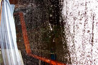 Es hat funktioniert. Wir haben den richtigen Weg gefunden. Es regnet. Man muss nur raffiniert genug sein, seinen Wunsch auf Mondwechsel legen und warten bis der Wetterbericht ein Tief ankündigt, dann muss man jedem erklären, dass er fest daran glauben muss und schon kann ein kleiner Spruch ein wahres Wunder vollbringen. Die Regentrude ist aufgewacht, es regnet. Wir werden noch ein paar Regentänze üben, vielleicht hält es einige Tage an. Doch leider ist auch hier der Wunsch der Vater des Gedankens. Die Regentrude hat wohl nur leicht mit einem Äuglein geblinzelt und ist sofort wieder eingeschlafen. Immerhin sind die Temperaturen von 40° auf 30° gefallen. Jedoch, gefährlich ist's den Leu zu wecken, das wusste schon unser Friedrich v. S. Der Wind heult wie die Wetterhexe persönlich. Dem Franzosen hinter uns fliegt das halbe Boot weg. In Sekundenschnelle sind wir zugeweht mit trockenen Blättern. Und dann entfesselt sich das Inferno. Die Natur holt nach was sie so lange entbehrt hat. Staub und Äste fliegen durch die Luft, abgerissene Blätter verstopfen unsere Ablaufrinnen und Manfred opfert sich zur Säuberung, damit uns das Wasser nicht ins Ruderhaus läuft. Er ist nass bis auf die Unterhose, doch er wollte ja heute abend sowieso duschen. Nach einer halben Stunde ist der Spuk vorbei und es ertönt nur noch die stete Musik des Regens, der auf Metall und Glas trommelt und die Luft mit dem Duft von feuchter Erde und Laub erfüllt. Endlich!!