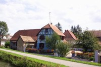 auf den Geist. Bis Dannemarie ist unser Wetter ganz ok. Beim Anlegen packt uns ein Regenguss, wir sind nass vom Ohrläppchen bis in die Zehenspitzen. Leider macht uns ein anderer Bootsfahrer einen Strich durch unsere Planung. Bis elf Uhr müssen wir auf ihn warten, bevor wir uns gemeinsam die Schleusentreppe nach Mühlhausen abseilen. Ist im Languedoc der größte zusammenhängende Weinberg Frankreichs, ist hier im Elsass der größte zusammenhängende Mais-Acker den wir je gesehen haben. Mais, Mais, Mais, so weit das Auge reicht, Ortschaft, Bauernhaus, Mais. Der Gedanke was die Franzosen mit so viel Mais anfangen, macht hungrig. Abends feiern wir meinen Geburtstag bei einem zünftig Mahl in der "Winstub" von Mulhouse. Dieses Mühlhausen ist seit dem Mittelalter eine "Industriestadt". Erstmals erwähnt im Jahre 803, steht dieser Weiler an einem Ort der ständig überschwemmt ist. Aus diesem Umstand ihren Vorteil ziehend, bauen die Einwohner hier eine Mühle, geben dem Weiler seinen Namen und erheben das Mühlrad zu ihrem Sinn- und Wappenbild. Von Friedrich Barbarossa zur Stadt erklärt, 1308 zur Reichstadt erhoben, Bündnisse mit der Schweiz und dem Königreich Frankreich, bewahrt sich Mühlhausen seine Autonomie und wird von den Wirren des Dreißigjährigen Krieges verschont. Immer mehr Industrien siedeln sich an.1798 hat die Stadt 6.000 Einwohner, 1866 bereits 60.000. Am 4.1.1798 stimmen die Mühlhausener für den Beitritt zu Frankreich. Die Transportinfrastruktur wird ausgebaut, Rhein-Rhône-Kanal und Eisenbahn. Der Aufschwung ist nicht mehr aufzuhalten. Mulhouse entwickelt sich zu einer der blühendsten Industriestädte Frankreichs. Zwischenzeitlich gebremst durch Kriege und immer wieder deutsche Annektierung, gehört Mulhouse, nicht zuletzt durch die Ansiedlung eines Peugeot-Werkes, immer noch zu den bedeutendsten Industriestädten Frankreichs. Ganz vergessen ist die deutsche Vergangenheit aber keineswegs. Jede Straße hat einen französischen und deutschen Straßennamen. Am 24.09. verlassen wir den Canal du Rhône au Rhin. Eine langweilig ausgebaute Wasserstraße bringt uns in den Grand Canal dŽAlsace, den kanalisierten Rhein. Der Mode-Architekt Le Corbusier entwarf in einer frühen Phase der Geschmacksverwirrung das auch heute noch ultramoderne Schleusenhaus von Niffer. Ich kann kaum glauben, dass ich schon nach so kurzer Zeit vergessen habe, wie es auf dem Rhein zugeht. Nach der sanften Fortbewegung auf den Kanälen, trifft dich das erste Wellental wie ein Tritt. Gleich zwei Hotelschiffe kommen uns entgegen. Die Wellen schießen kreuz und quer übers Wasser, laufen weg, kommen wieder, bauen sich auf. Unsere Beluga bockt wie ein Mustang. Der Anker donnert gegen den Bug. Die Bilder kleppern an der Wand. Ich werde es wieder lernen: eine Hand für das Schiff, die andere für den Mann. Auf Deutsch: halt dich fest. Wir kennen viele Wasserstraßen und Kanäle, aber so öde und langweilig wie das obere Stück Rhein, es gibt nichts Vergleichbares. Wir empfinden es wie Erholung in den Colmar-Arm abzubiegen und bei strahlendem Sonnenschein die 3stündige Fahrt in die Perle des Elsass zu genießen. |