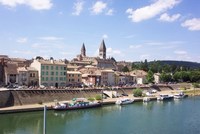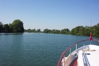Die Liegeplätze an der Saône sind alle knallvoll. Es scheint tatsächlich ein Fehler zu sein, während der französischen Ferien im August unterwegs zu sein. Doch wir sind nicht verdrießlich, genau so gerne ankern wir hinter einer Insel oder in einem Seitenarm. Der Fluss hat derzeit wenig Wasser, mein Kapitän ist beim manövrieren außerhalb des Fahrwassers sehr vorsichtig. In Mâcon finden wir mittags ein Plätzchen an einem Ponton und nehmen auch gleich die Gelegenheit wahr einen Tag Pause einzulegen. Unsere Vorräte müssen dringend aufgefüllt werden. Das erste Mal, seit wir unterwegs sind, erleben wir ein richtiges Donnerwetter mit Regentropfen so groß, dass ein einziger Tropfen leicht ein Schnapsglas füllen könnte. Mâcon ist der südliche Endpunkt der historischen Landschaft von Burgund. Hier ist das Haus des Weines beheimatet, jährlich wird hier eine Weinmesse abgehalten. Der bekannte Beaujolais kommt aus diesem Gebiet. Wahrzeichen der Stadt ist eine Brücke aus dem 14.Jh. Um diese zu erhalten wurde beim Ausbau der Saône ein 3 km langer Umgehungskanal um die Stadt gebaut. In Verdun-sur-le-Doubs münden der Doubs und der Dheune in die Saône. Leider ist der Ort vollständig von einer Charter-Firma eingenommen. Wir fahren das hier völlig unberührte Flüsschen Doubs bis zu seinem schiffbaren Ende, lassen da den Anker fallen und machen uns ein paar geruhsame Tage. Es ist irre heiß, jede auch noch so kleine Bewegung verursacht einen Schweißausbruch. Richtig angenehm ist es nur, wenn man bis zum Hals im Wasser sitzt. Innerhalb von drei Tagen wird aus dem glasklaren dunkelgrünen Wasser eine trübe grüne Sülze. Sie Sonne lässt die Algen nur so sprießen. Jetzt will ich auch nicht mehr baden. Außer einem Supermarkt und ein paar alten Fachwerkhäusern, hat Seurre nicht viel zu bieten. Die Kirche ist sehenswert und hat eine ungemein beeindruckende Orgel. Der kleine Yachthafen ist sehr nett und eignet sich hervorragend für einen kurzen Aufenthalt. Hier treffen wir seit langer Zeit mal wieder Deutsche zu einem kleinen Plausch.