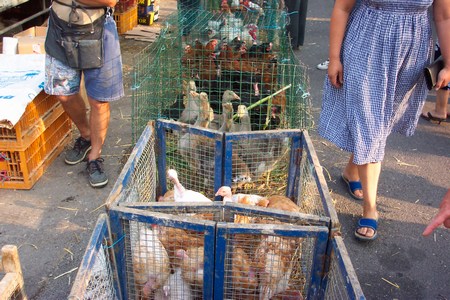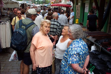 Sie hatten Glück und erwischten den 3. Montag im Juli. Der Markt zog sich durch die gesamte Altstadt. Ein großer Platz war nur für den Tiermarkt reserviert. Doris war mächtig beeindruckt. Nie hätte sie gedacht, dass es so viele verschiedene Arten Federvieh gibt. Vom gerade ausgeschlüpften Küken über stattliche Hähne, Perlhühner, Truthähne, Gänse, Enten, Tauben in allen Farben, Ziervögel in großen Volieren und vom Zwergkaninchen-Baby bis zu ausgewachsenen fetten Rammlern, (pardon, der heißt so, Ähnlichkeiten mit lebenden Personen sind rein zufällig), Ziegen, Schafe, Meerschweinchen und ganz am anderen Ende noch ein paar Pferde. Gerochen hat das alles eklig. „Hinkel stinke,“ sagte Luciano, „und wenn se g'backe si, dann schmögge se.“ Gottlob hatten sie in der Nacht ein Gewitter und die Temperatur war von 38 Grad auf 22 Grad gefallen, sonst könnten sie es hier schier nicht aushalten. Doris hat in jeden Käfig geschaut. Wo waren sie nur, die Bresse-Hühner, die mit den roten Kämmen und den blauen Füßen. Sie waren unter ihren Artgenossen definitiv in der Minderzahl. „Die können einem doch nur leid tun, die armen Viecher. Die sehen ja jetzt schon aus wie gerupft, mit ihren nackten Ärschen und Hälsen, eingepfercht in winzige Käfige. Da vergeht einem jede Lust auf ein Grillhähnchen.“ Manfred schüttelte sich bei diesem Anblick und allen anderen ging es nicht besser. Der Appetit auf so ein Huhn war ihnen schlagartig vergangen. Als sie sich dann aber knusprig braun im Grill drehten, sah die Welt schon wieder anders aus. Doris, die am wildesten auf eine Portion Bresse-Huhn war, kaute gelangweilt auf einem Stückchen Brust: „ Mal ganz ehrlich, Manfred, die schmecken doch nicht anders als eines vom Wiesenhof? Und schon gar nicht nach 13 Euro?“ Der einzige, der wirklich standhaft war, war Luciano. Er versuchte keinen Bissen und schüttelte sich nach Stunden immer noch über den Anblick der gequälten Kreaturen. Der größte Teil des Marktes war Wochenmarkt, Obst-Gemüse-Käse-Wurst-Brot-Honig und dann natürlich Klamotten über Klamotten in allen Größen und Preislagen, Schuhe, Schmuck, Vorhänge, Uhren, Haushaltswaren, Blumen, Körbe, Baby-Kleidung zum Verlieben. „Ich werde jetzt unseren Hausspruch ändern, “ sagte Doris, „ es wird nicht mehr heißen: Unser Schiff ist ein Loch im Wasser in das wir unser ganzes Geld werfen. Es heißt jetzt: Der Markt in Louhans.....“ Sie erstanden lauter tolle Dinge, bis beider Geldbeutel total leer war. „Jetzt muss ich doch tatsächlich noch in den Supermarkt einkaufen, da nehmen sie meine Karte,“ grinste Doris und Manfred weigerte sich standhaft und genehmigte sich von den letzen 3 Euro ein Bier im Cafe.