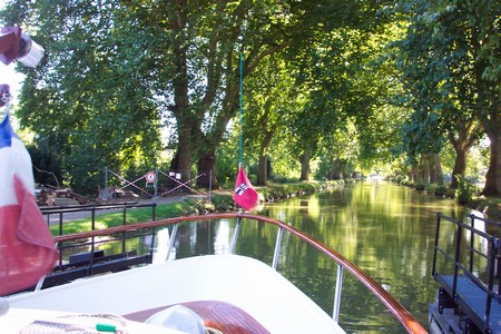 Als sie am nächsten Morgen aufbrechen wollten, war Moni wieder mal abgängig. „Du glaubst doch nicht, dass ich mich ständig von diesem kleinen Ungeheuer verarschen lasse“, knurrte Manfred, „wir zockeln schon mal langsam los. Du kannst uns ja nicht verfehlen Luciano.“ So kam es, dass sie ganz alleine schleusten und die 19 km nach Dôle zurücklegten. Als einziges Boot in der Schleuse zu sein, hatte natürlich auch erhebliche Vorteile. Sie konnten ganz hinten anbinden und hatten keinerlei Gezerre mit den Tauen. Das einschießende Wasser katapultierte den Bug von Beluga nicht von einer an die andere Schleusenwand. Sie waren den Doubs schon gefahren, als die Schleusen noch von Hand bedient wurden. Damals rissen die Schleusenwärter die Schütze in den Toren auf, dass Wassermassen mit Urgewalt in die Schleuse donnerten. Die ewig Gestrigen konnten dramaturgisch brisante Märchen davon erzählen und die nachgewachsenen Oberwichtigtuer werden weiterhin milde darüber lächeln. Im Laufe der Zeit wurden die Schütze entschärft und die Schleusen automatisiert und sie konnten sie mit einem tollen elektronischen Gerät selbst bedienen. Wenn die Schleusen mal nicht so wollten, wie sie eigentlich sollten, schrieb das Gerät: Defekt aufgenommen, bitte warten. Das schrieb es öfter. Von der Saône bis Dôle wurde ein Kanal gebaut, weil der Doubs in Dole seine Richtung änderte und eine Kanalisation viel aufwändiger gewesen wäre, als einen Kanal zu buddeln. Sie legten grundsätzlich unterhalb der Brücke am Gelände der VNF an, um gegenüber in den Supermarkt einzufallen. Hinten wickelten sie ihr Tau um einen Baumstumpf, vorne schlug Manfred einen Erdnagel ein. Sie waren kaum fest, kam schon ein Angler anmarschiert. Ob es ihnen was ausmachen würde, wenn er hinter dem Boot angelte, wollte er wissen. Ob er sie auch nicht störe? Es war eigentlich unfassbar. Sie lagen bestimmt an seinem Lieblingsplatz und er wollte ihre Erlaubnis hier zu angeln. In der Saône hatte der Angler Stöcke nach ihnen geworfen. Auch die Leute vom VNF winkten ab, als sie um Erlaubnis fragten, ob sie dort liegen dürften. Sie könnten hier überwintern, grinste der Arbeiter, ihnen wäre das egal, nur abends, da schlössen sie das Tor ab, da müssten sie sich einen anderen Weg auf die Straße suchen. „Die Franzosen sind unglaublich, “ sagte Doris zu Manfred, „versuch du doch mal bei uns zu Hause am Wasserbau anzulegen, die würden glatt auf dich schießen.“ Der Platz war wunderbar, ruhig und doch nicht sehr weit von der Innenstadt, denn samstags war Markt in Dôle. Dann war die Markthalle geöffnet und die Altstadt vollgestellt mit Buden und Ständchen. Ein Bild wie ein Jahrmarkt im Mittelalter. Dieser Atmosphäre konnten sie sich nie entziehen. August ist der Ferienmonat der Franzosen. Entsprechend dünn ausgestattet war in diesem Monat auch der Markt. Schade fürs Auge, gut für den Geldbeutel. Noch einmal durchquerten sie Dôle auf ihrem Weg in eine beeindruckende Platanenallee. „Das musste ja mal passieren“, sagte Manfred kopfschüttelnd, „hab ich nicht gesagt, dass die alten Bäume gefährlich sind?“ Ja, das hatte er. Jedes Jahr, wenn sie hier vorbei kamen, hielt er Doris einen Vortag, dass sie gefälligst auf dem Achterschiff unter dem Gestänge des Bimini oder besser noch im Boot zu bleiben hätte, weil irgendwann mal einer dieser morschen Äste abkrachen und jemanden totschlagen würde. Sein Beschützerinstinkt war ungeheuer ausgeprägt. Manchmal ging er ihr mit dieser patriarchalischen Simplizität ganz schön auf den Geist. Anscheinend war tatsächlich mal was passiert, denn sie lasen ein großes Schild, dass man hier nicht halten und anlegen dürfte und die Spazierwege auf beiden Seiten des Kanals waren mit großen Gittern abgesperrt. Da die französischen Behörden ihre Pappenheimer kannten und wussten, dass sich Franzosen generell nicht an Verbotsschilder hielten, waren diese Absperrungen nicht zu überwindende Hindernisse. Dieser Wasserweg war wie ein Gemälde, in das sie hineinfuhren. Eine grüne Kuppel durch welche die Sonne vereinzelte Strahlen schickte. In diesem surrealistisches Bild müssten sich Waldelfen und Nereiden tummeln. Viel zu kurz und viel zu schnell zu Ende. Nach zwei Stunden Fahrtzeit erreichten sie in Rochefort-sur-Nenon erstmals wieder den Doubs. Eine Écluse de garde, lang, mit einer Kurve, trennte den Kanal vom Fluss. Direkt daneben zog sich ein schmales Sträßchen unterhalb schroffer Kalksteinfelsen, vom Kanal nur getrennt durch Betonpoller, die teuflisch an Burgzinnen erinnerten. Sie hatten den Eindruck durch einen Burggraben zu fahren. Und als dieser Graben sich erweiterte, lag neben ihnen das wilde Wehr. Nach dem Anlegen kletterten sie durch eine winzige Raul auf die Felsen und genossen einen unvergleichlichen Blick über den Fluss. Am Rand eines Felsens stehen, aufschauen in den blassblauen Himmel und einatmen, ein Stück Freiheit von dem man in der klaustrophobischen Enge einer Stadt nur träumen konnte.