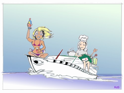 verantwortungsbewusste Aufgabe des Bootfahrens übernimmt, sorgt die Bordfrau für die Bequemlichkeit desselben.
